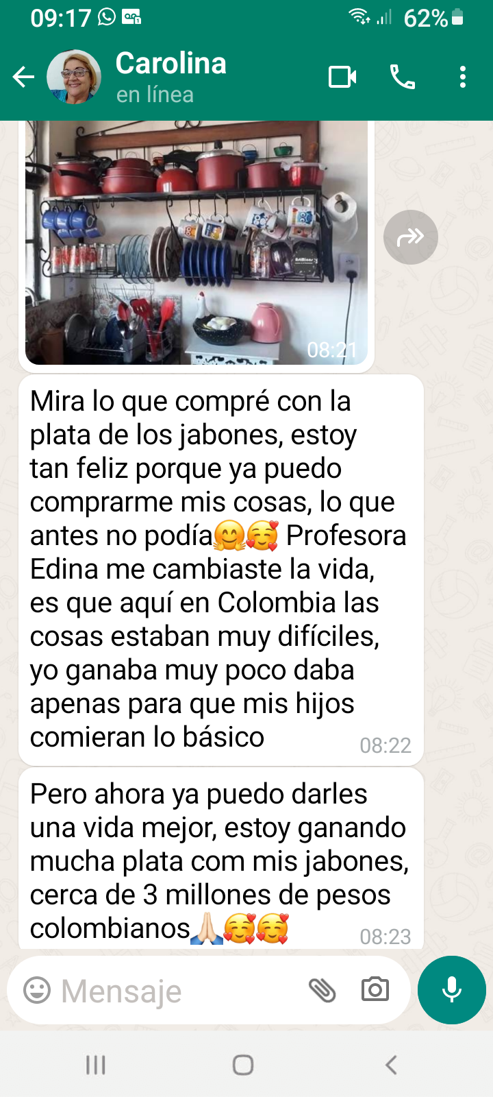 Finalmente pude comprarle un teléfono nuevo a mi hijo. Antes no tenía dinero, pero ahora lo logré. Muchísimas gracias, profesora Edina