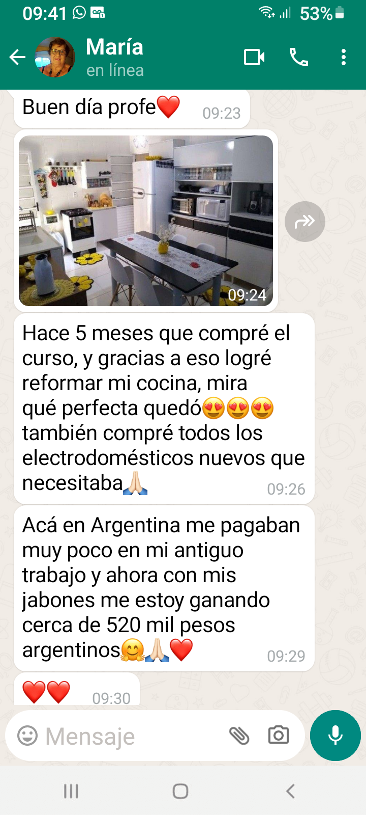 Hace un año que compré el curso y acá me fue tan bien que logré reformar mi casa quedó muy bonita. Estoy muy agradecida con usted profesora Edina